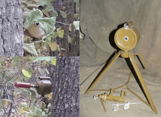 It was affixed to a tree as an off-route mine, fitted with what appears to be an initiator from a VUZ-8, likely with a MD-5M detonator (top left and top right images)