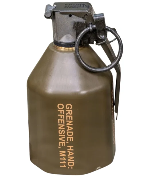 ![]() | M111GRENADE The M111 Offensive Hand Grenade (OHG) is a US-developed, offensive, blast-effect, plastic-bodied, hand grenade. It was designed to replace the Second World War era Mk. IIIA2, which has been obsolete for many decades. The lethal effect of the M111 is provided by blast overpressure, rather than fragmentation like many other grenades. |